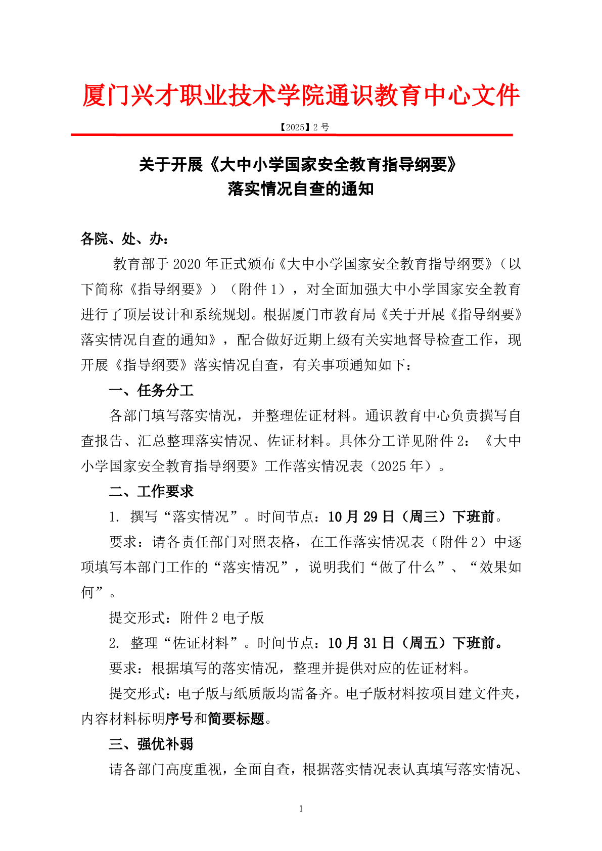 关于开展《大中小学国家安全教育指导纲要》落实情况自查的通知