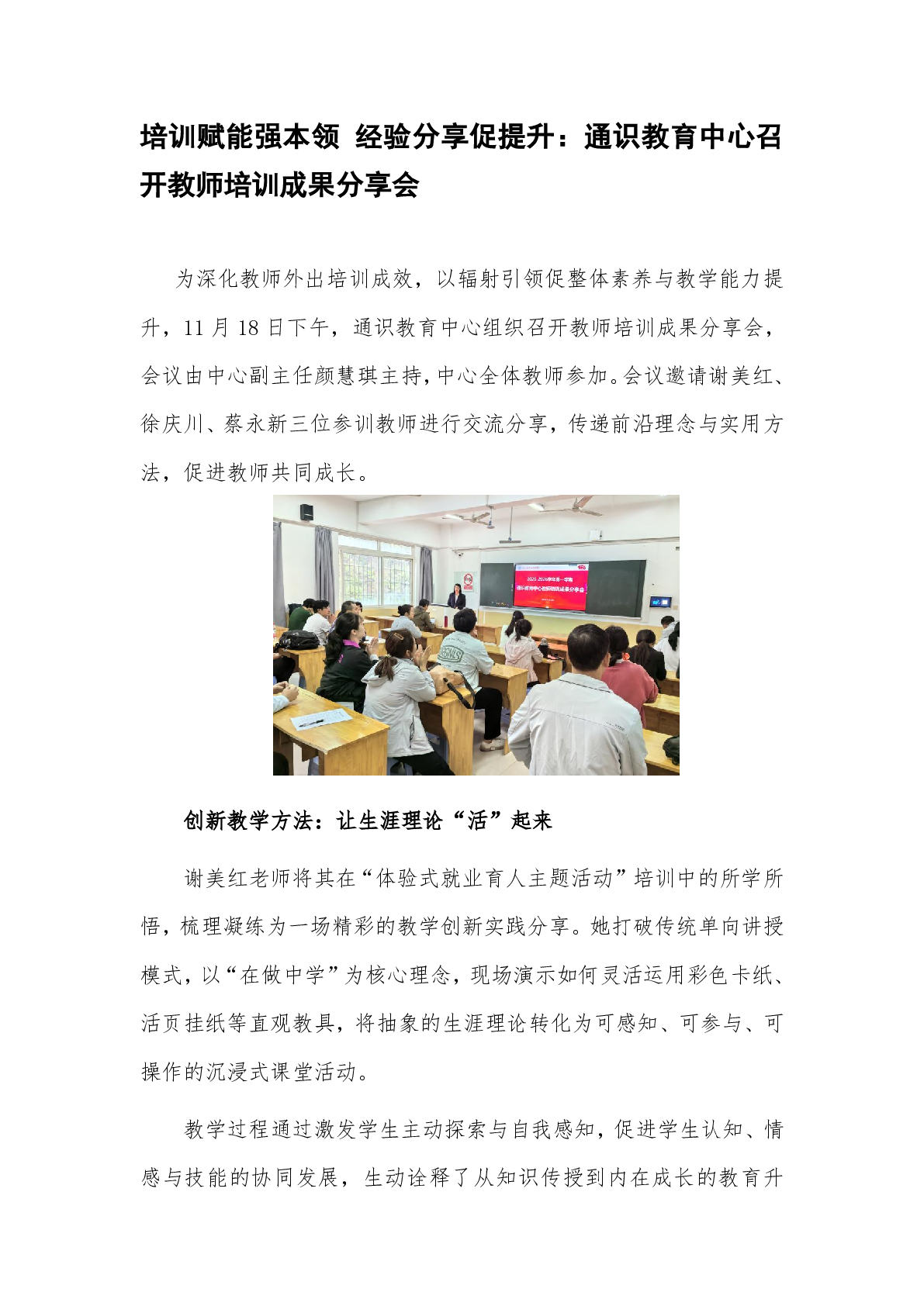 培训赋能强本领 经验分享促提升:通识教育中心召开教